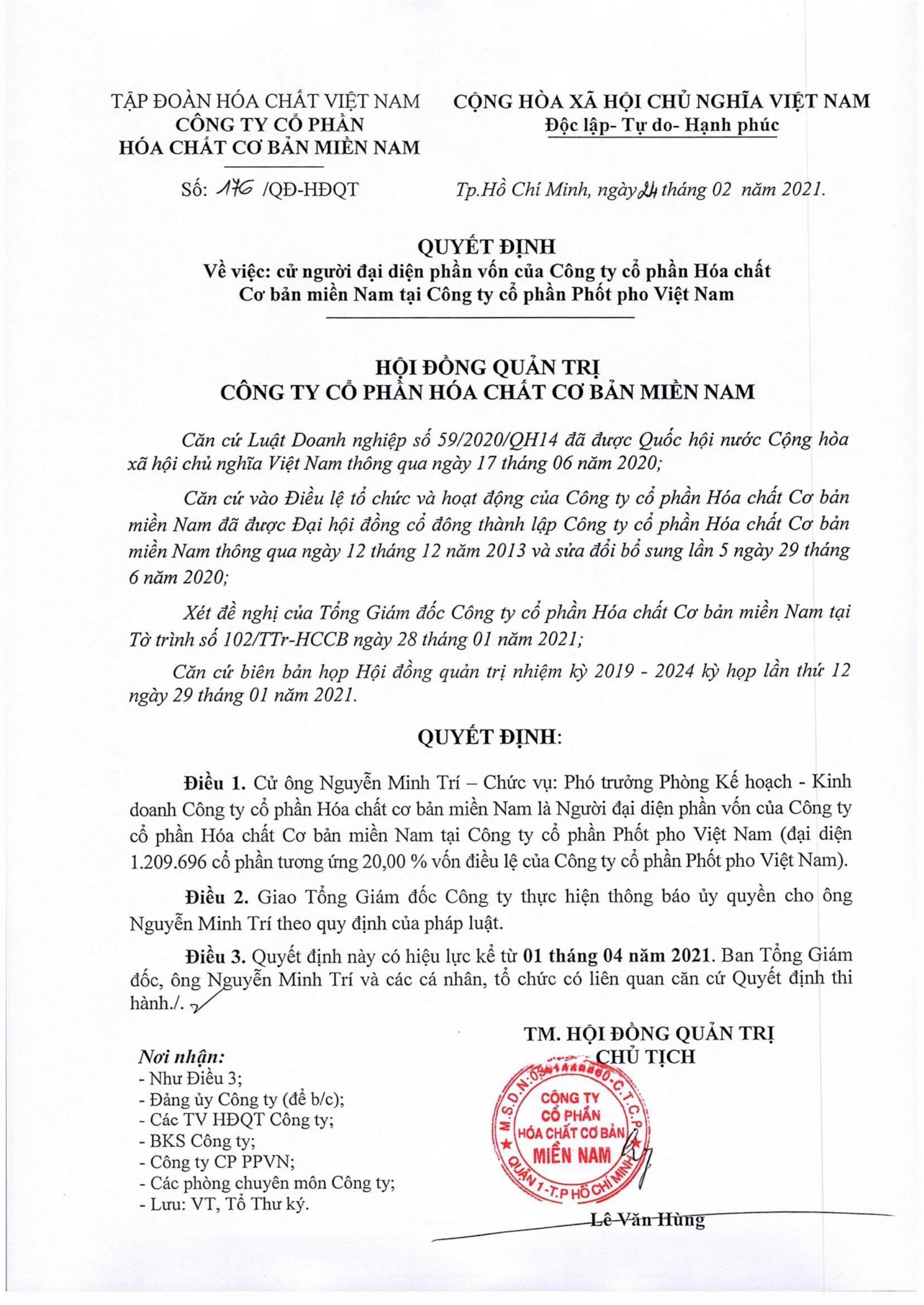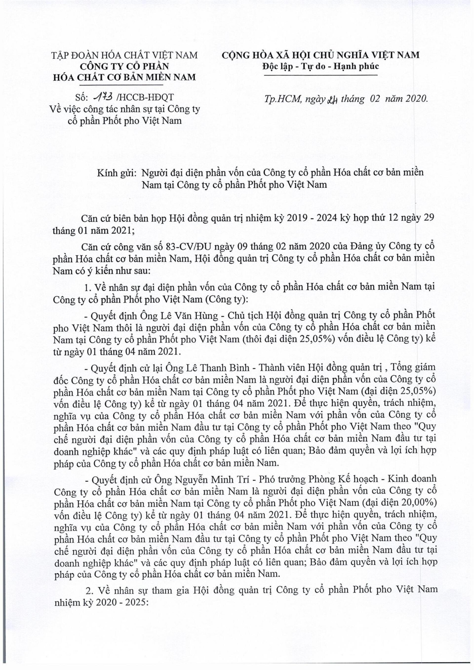 Công tác nhân sự tại CTCP Phốt pho Việt Nam Tháng Hai 24, 2021 Quan hệ cổ đông Quản Trị Tải về: Tại đây