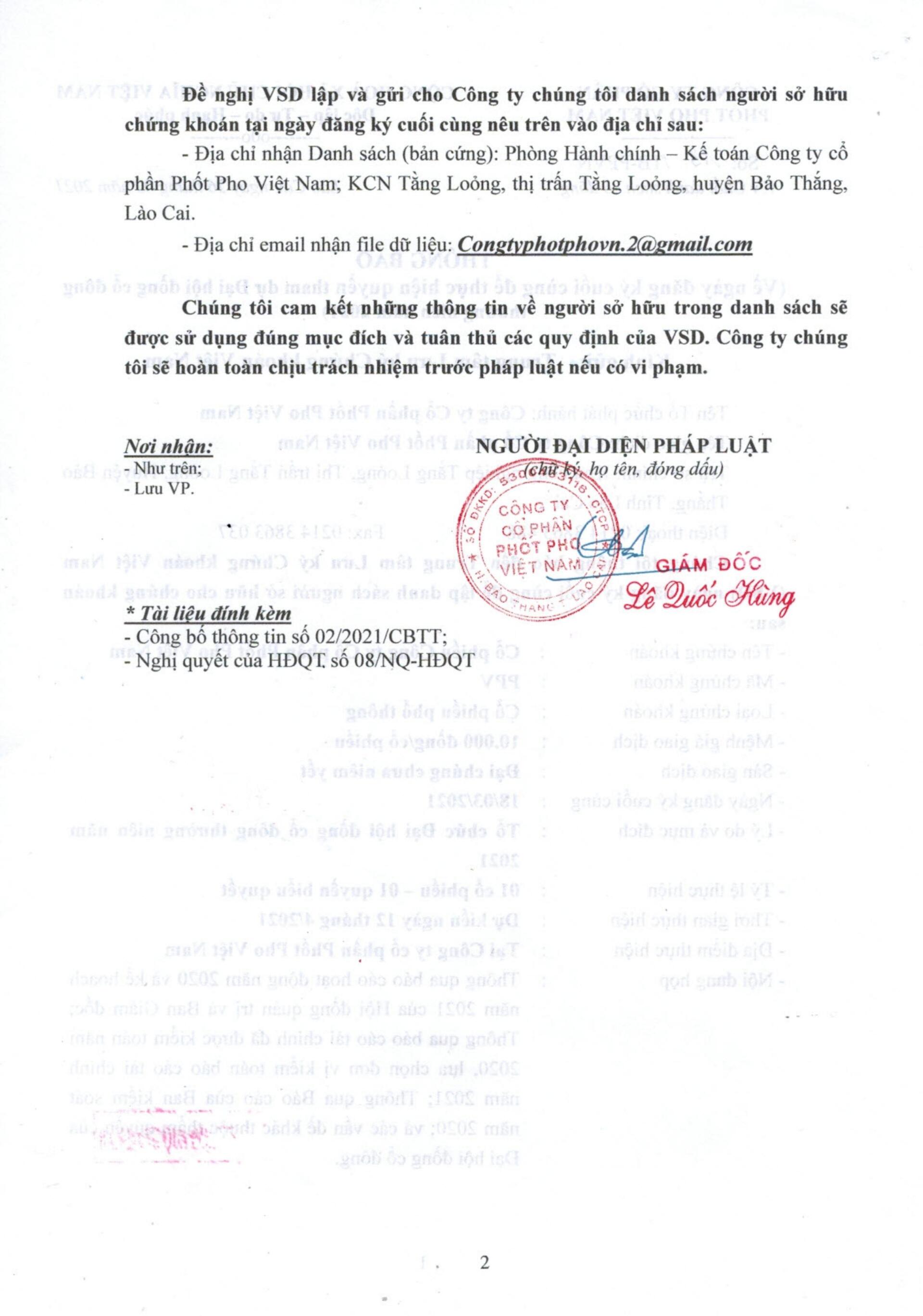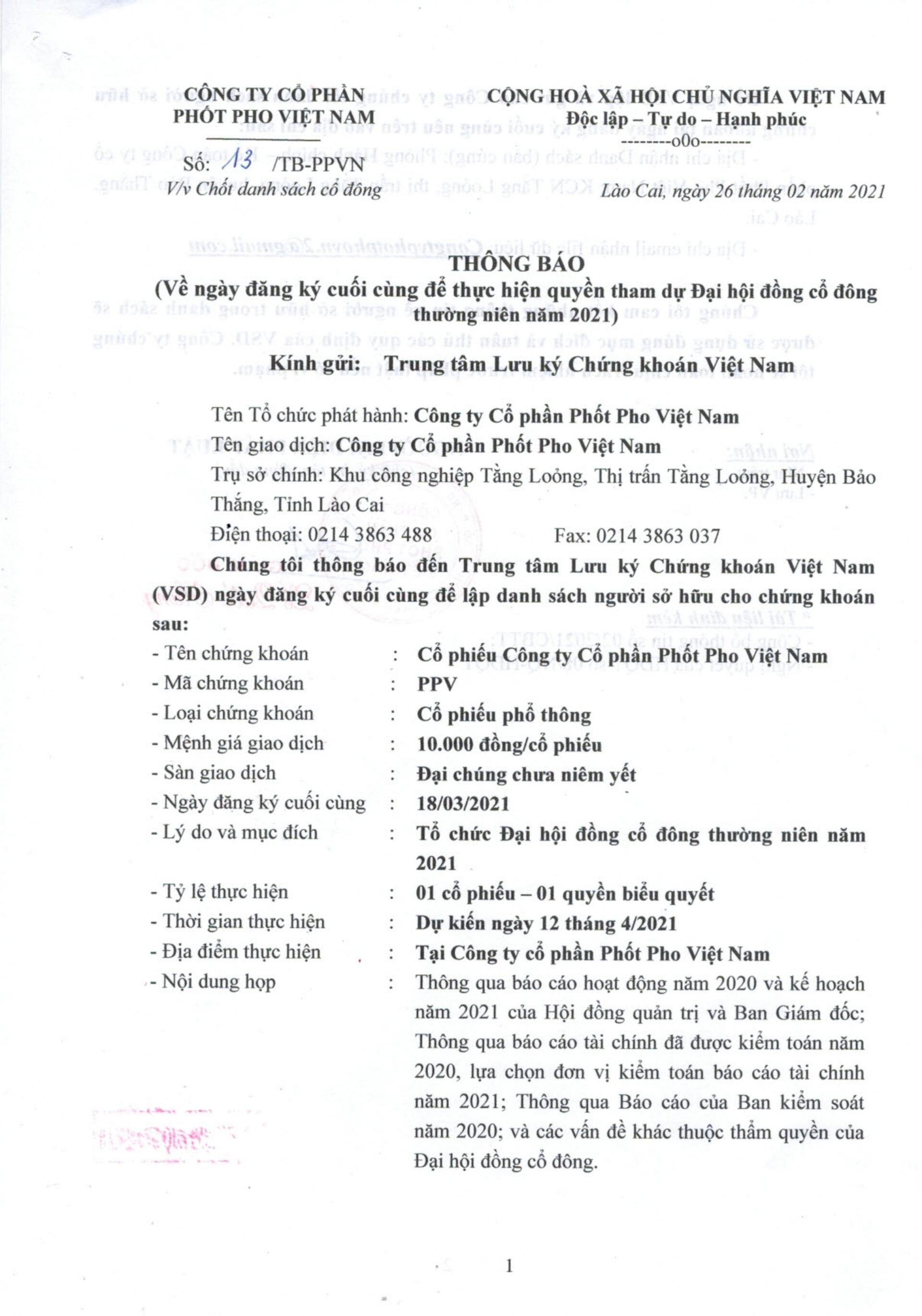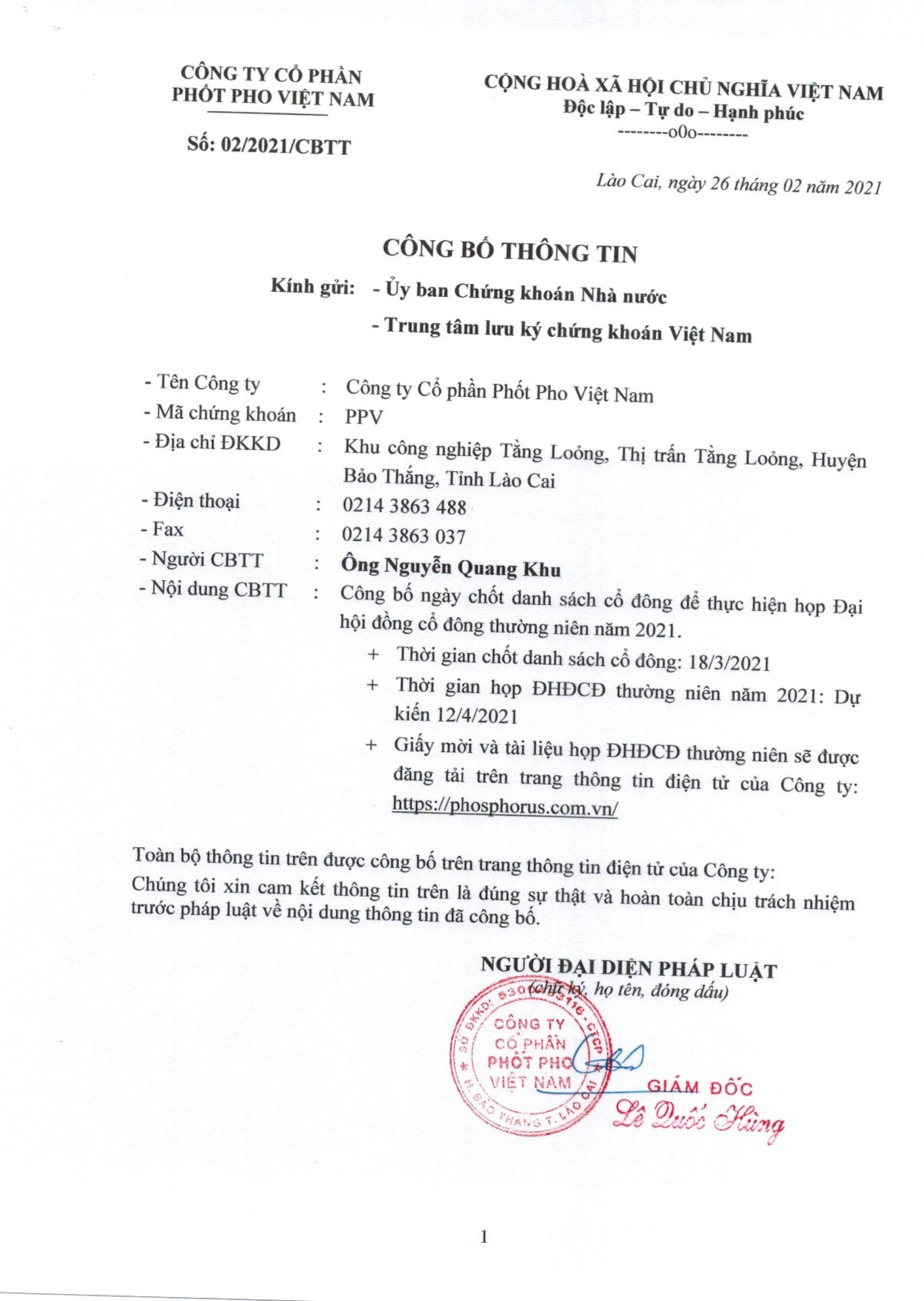 Nghị quyết của Hội Đồng Quản Trị về việc tổ chức họp Đại hội đồng cổ đông thường niên năm 2021